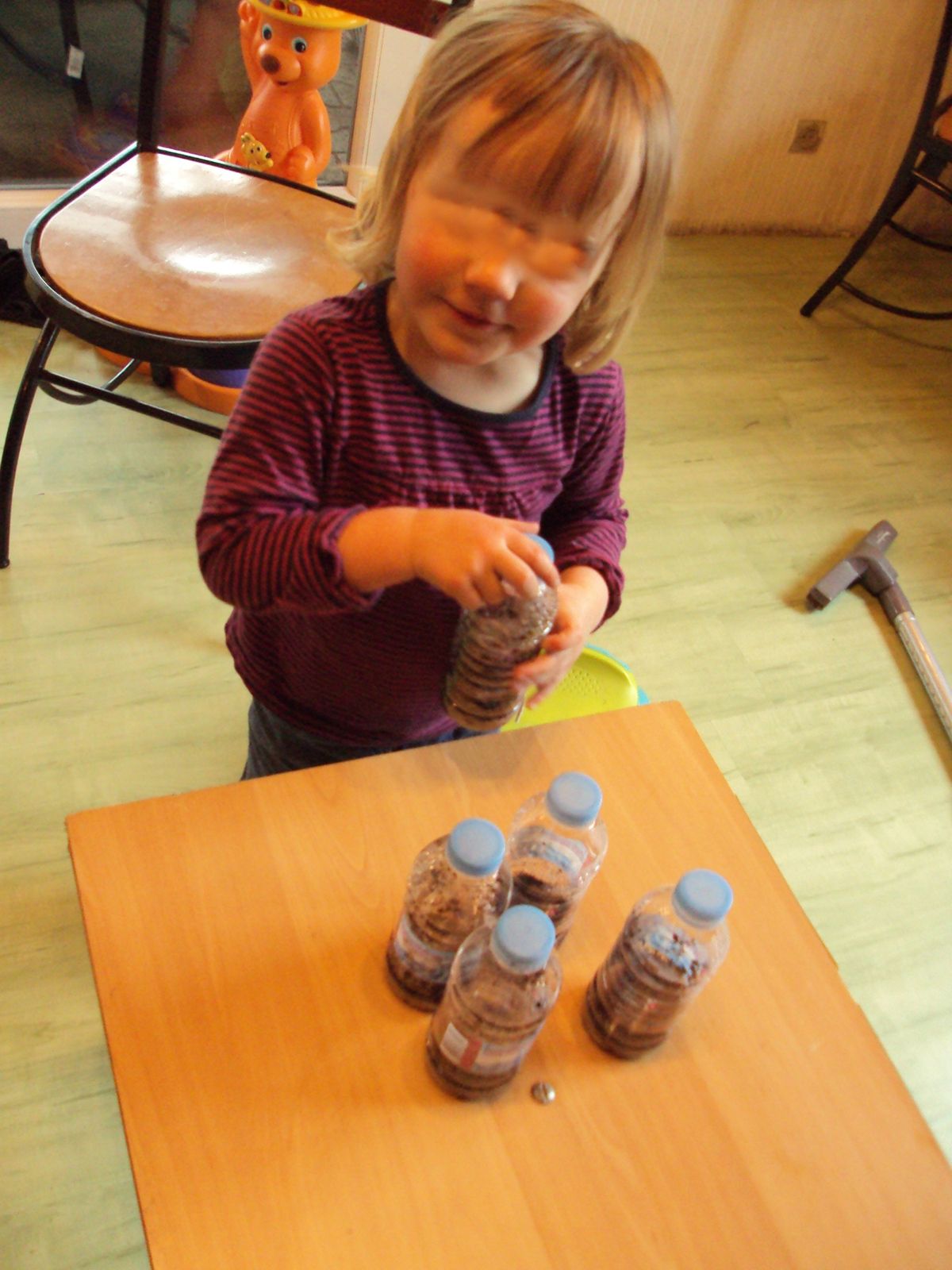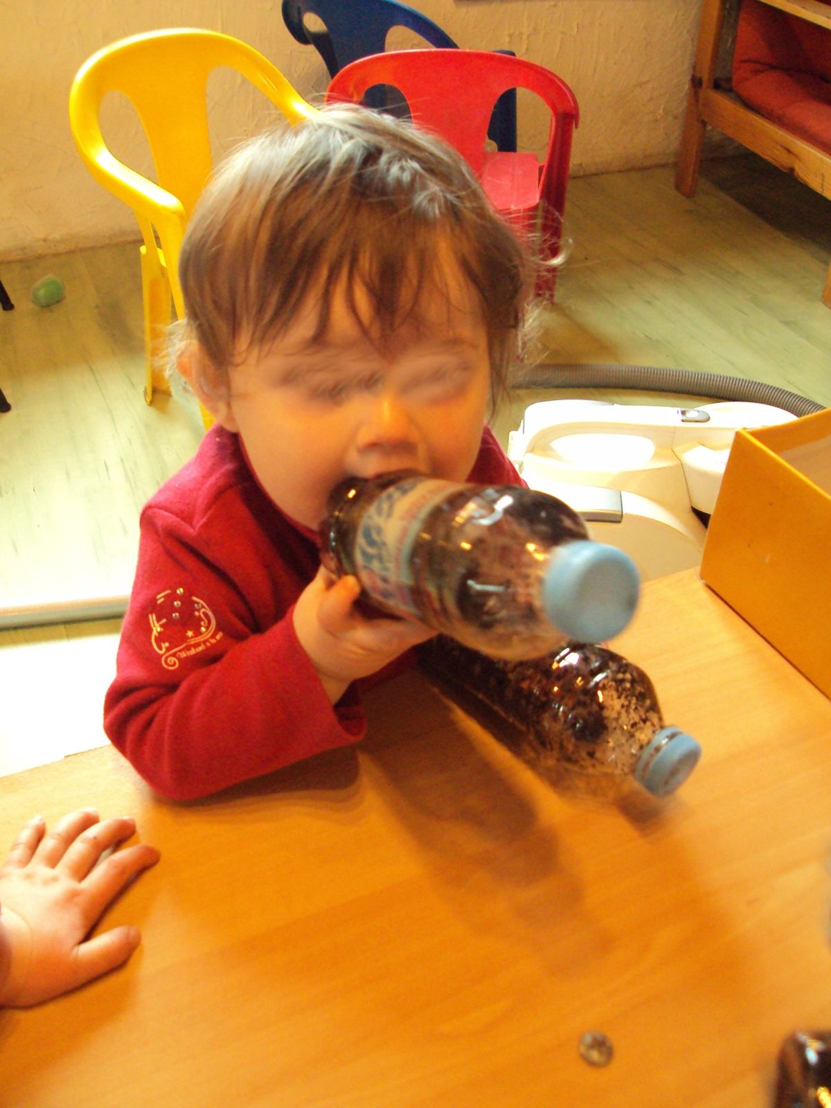 et puis nous avons senti à nouveau nos bouteilles de terre parfumée, sur les 5 deux ne sentaient plus rien, les grands ont bien compris comment renifler. pas les petits.